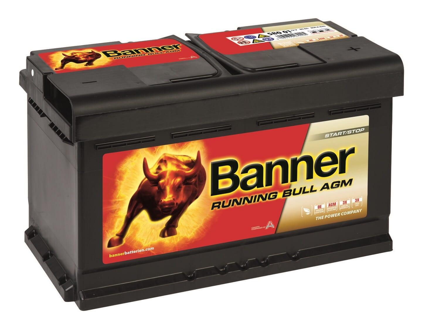 Running Bull AGM, Running Bull EFB / EFB PRO og Running Bull BackUp. Med de svært spesialiserte batteriene i Running Bull-serien dekker Banner hele start-stopp-segmentet for energiforsyning til kjøretøy. Kombinasjonen av topp startytelse og høy syklisk motstand gjør Running Bull-serien til den ideelle kraftpakken for å håndtere de ekstreme påkjenningene forårsaket av flere startprosesser og konstant lading og utlading i mikrohybridbiler på en sikker måte.