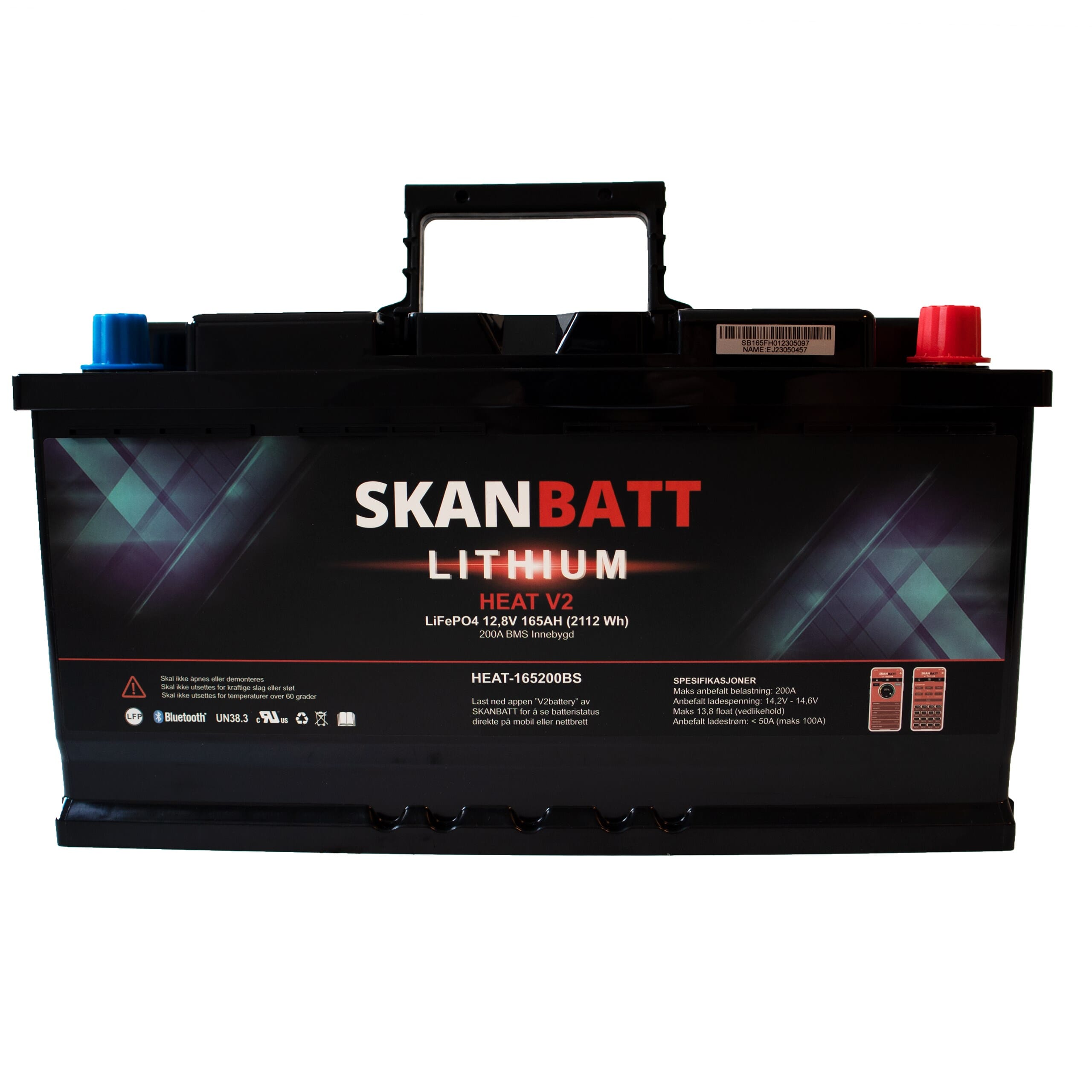 SKANBATT V2 Lithium HEAT Batteri 12V 165Ah 150A BMS - 8 års garanti!
