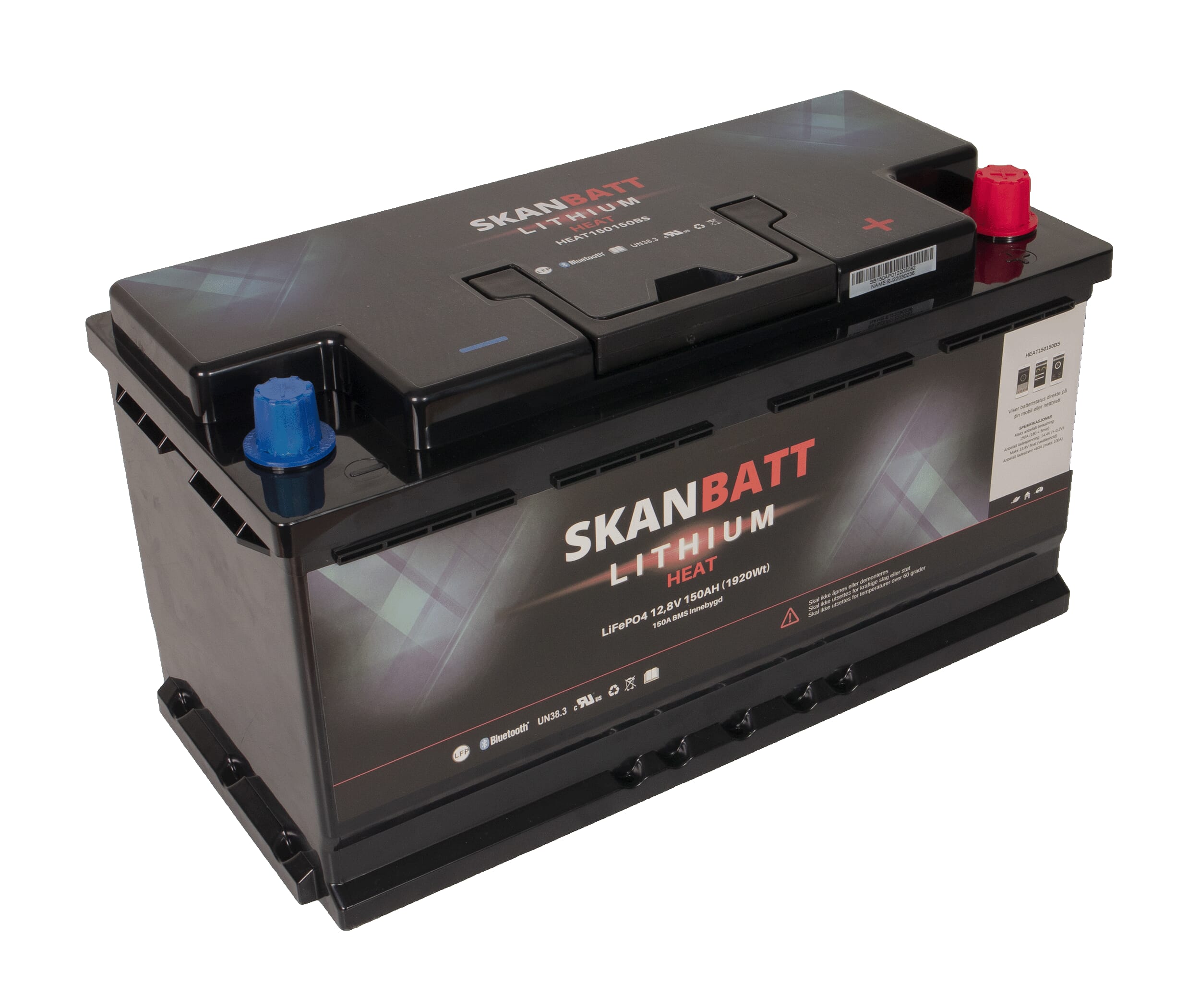 SKANBATT Lithium HEAT Batteri 12V 150AH 150A BMS - Bobil - Bluetooth