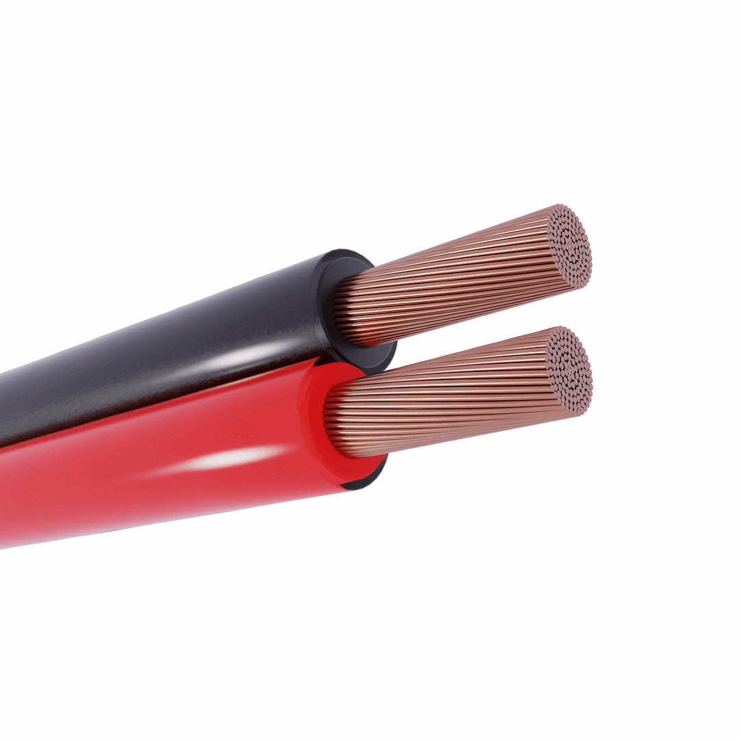 50mm² kabel med både sort og rød ledning i en transparent isolasjon.